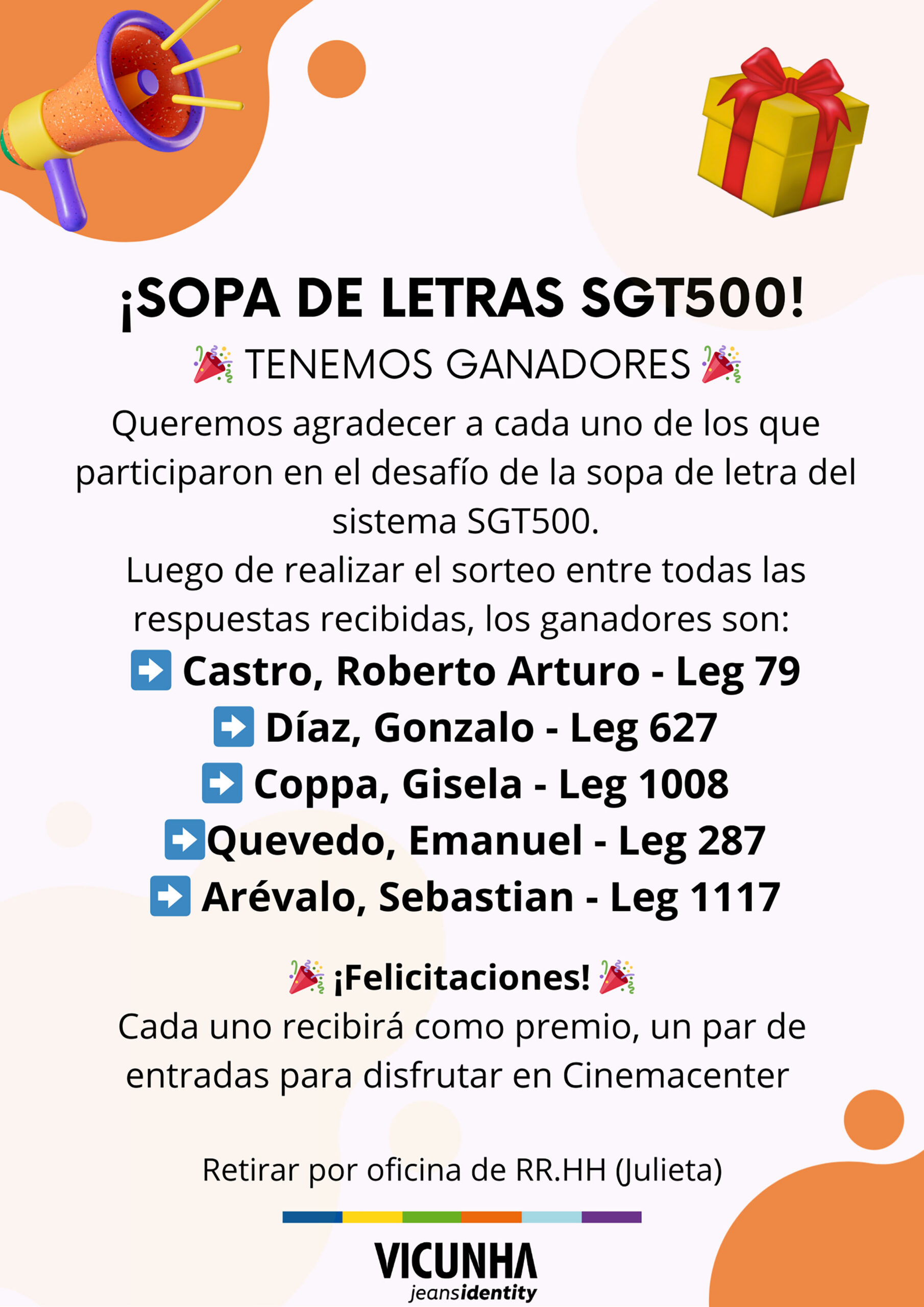 Ganadores de la sopa de letras – SGT 500
