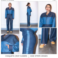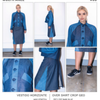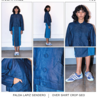 Reimaginando el denim mediante juegos de paneles, creando un efecto visual moderno con diferentes tonos de denim. Entre las telas utilizadas se encuentran Hemp, Iago Stretch, Zef y Zef Baby Blue, Dustin, y Iago Black.