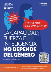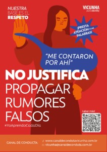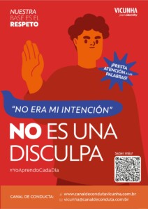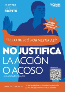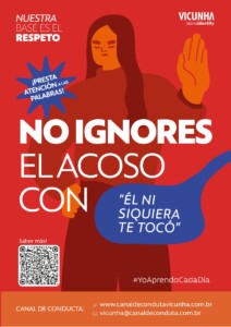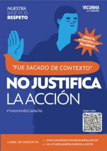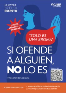 El pasado jueves 24, durante el webinar “ Nuestra Base es el Respeto ”, Vicunha lanzó una nueva campaña contra el acoso –de cualquier naturaleza, moral o sexual– en sus unidades de Brasil y Latam. Se trata de una iniciativa liderada por el departamento de Recursos Humanos .