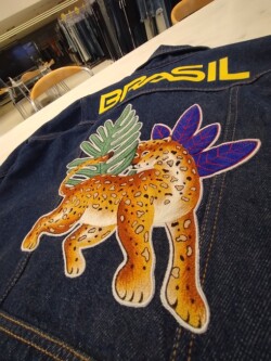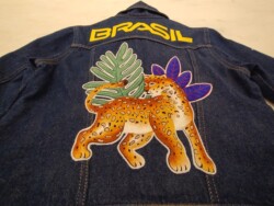 Además, estas chaquetas están adornadas con figuras de animales típicos de la fauna brasileña (guacamayo, jaguar y tucán), bordadas por las habilidosas “Bordadeiras do Seridó” costureras expertas en bordado, provenientes de la región semiárida nordeste de Brasil, en colaboración con el Instituto Riachuelo, la marca oficial de moda del equipo brasileño, que realzó aún más el tradicional modelo trucker de chaqueta jeans.