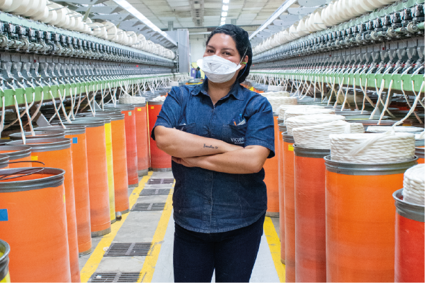 El trabajo en Vicunha no solo ha sido una plataforma para su desarrollo profesional, sino también una oportunidad para mejorar su calidad de vida. “Aprendo cada día de mis compañeros y compañeras. Aquí no solo se trata de fortalecer habilidades técnicas, sino también de crecer a nivel personal. El ambiente de trabajo me ha permitido desarrollar nuevas capacidades y sentirme realmente integrada en el equipo”.