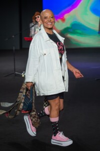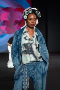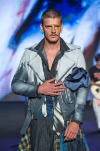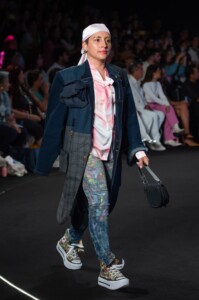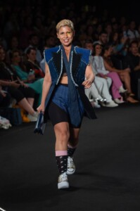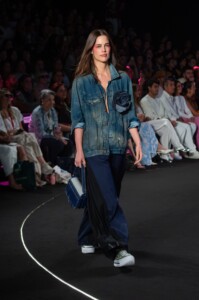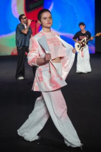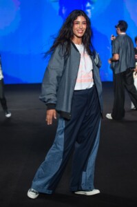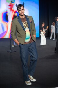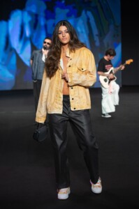 El diseñador Jorge Orozco, quien regresó al espacio que lo vio desfilar años atrás, esta vez transformado por una experiencia de vida que marcó su esencia: su proceso como paciente oncológico. Presentó su colección AURA una propuesta, llena de esperanza y simbolismo, que fusionó la sastrería clásica con la ligereza del denim de Vicunha, creando prendas que buscan hacer visible lo que a menudo se siente pero no se ve. Lo más conmovedor fue la participación de invitadas especiales: pacientes oncológicas que, con su fortaleza, modelaron la colección.