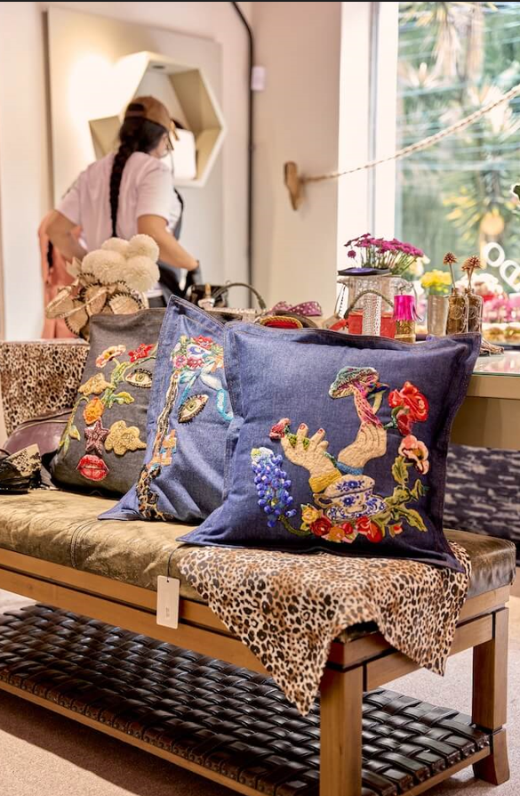 El resultado fue una colección de piezas únicas: desde calzado y accesorios hasta artículos para el hogar como caminos de mesa, cojines y más. La casa se llenó con los colores, hilos y texturas de los bordados a mano de Amarpo Design, creando diseños audaces que elevaron cada pieza, junto a la confección de Nimes. En este mismo espacio, convivieron las propuestas de diseñadores como Camilo Álvarez y 20 marcas más, demostrando el poder de la colaboración, llevando la versatilidad de nuestros tejidos a nuevos horizontes.